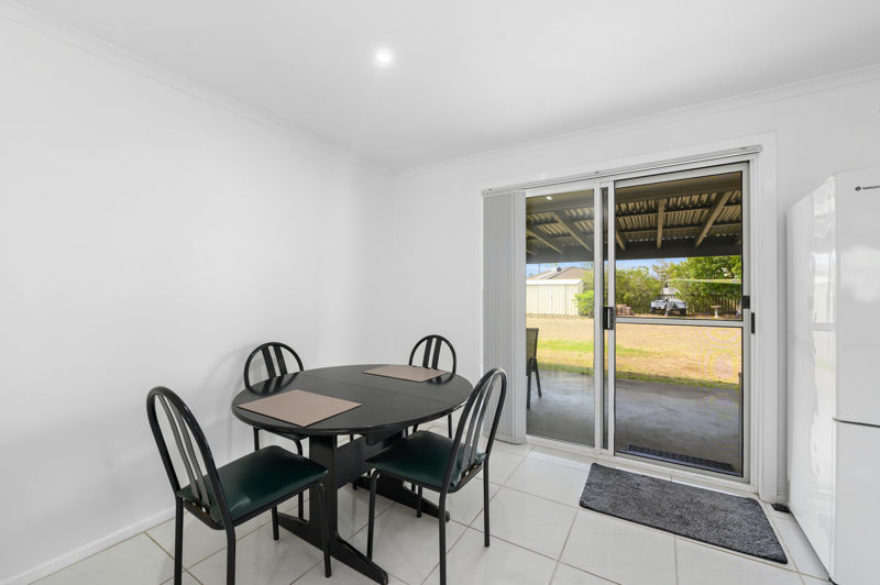 The home comprises of 3 bedrooms with built in robes, modern kitchen, open plan living area with reverse cycle air conditioning, ceiling fans throughout, tiled bathroom, drive thru single lock up garage and a massive covered entertaining area.